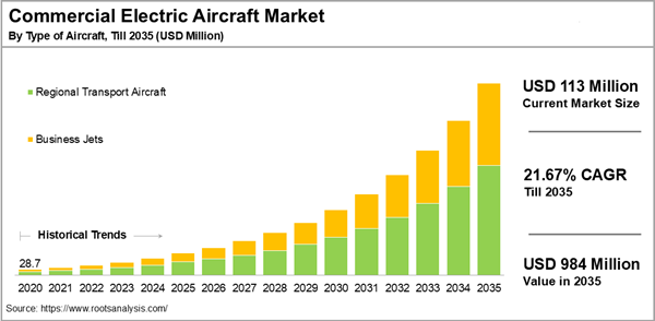 Dublin, Oct. 02, 2025 (GLOBE NEWSWIRE) -- The "Commercial Electric Aircraft Market Industry Trends and Global Forecasts to 2035: Distribution by Type of Aircraft, Type of Flying Range, Type of Power, Type of Propulsion, Type of Technology, Area of Application and Geographical Regions" report has been added to ResearchAndMarkets.com's offering.
