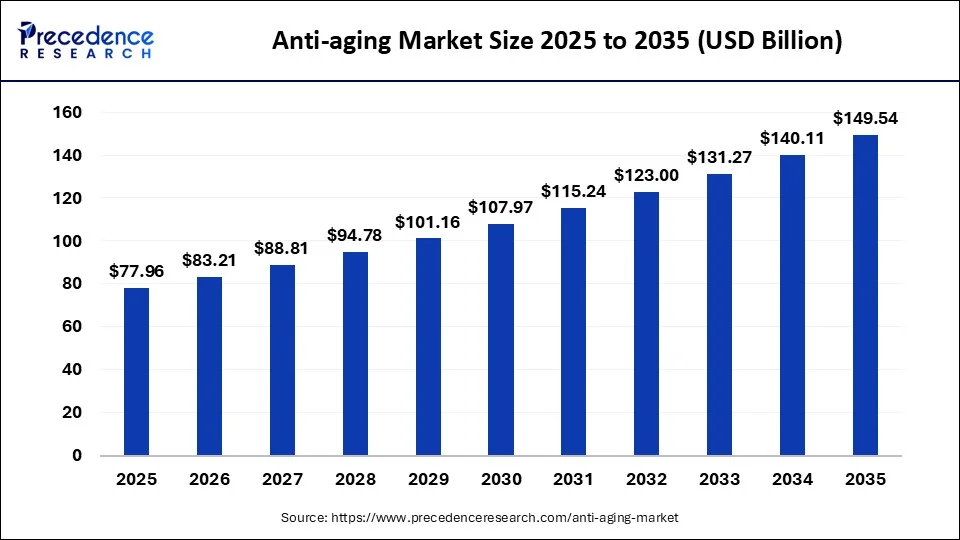 Ottawa, Dec. 12, 2025 (GLOBE NEWSWIRE) -- The global anti-aging market size is expected to be worth over USD 149.54 billion by 2035, increasing from USD 83.21 billion in 2026, growing at a strong CAGR of 6.73% between 2026 and 2035. The increasing awareness about personal appearance and the aging population drives the market growth.