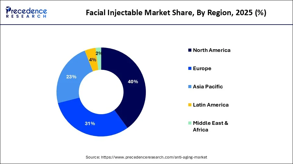 According to Precedence Research, the global anti-aging market size will grow from USD 77.96 billion in 2025 to nearly USD 149.54 billion by 2035, with an expected CAGR of 6.73% from 2026 to 2035. Driven by rising demand for preventive skincare, non-invasive aesthetic treatments, and personalized solutions. North America leads the market, while Asia Pacific is poised for the fastest growth. North America dominated the global market with a 40% share in 2025, while Asia Pacific is expected to be the fastest-growing region between 2026 and 2035.