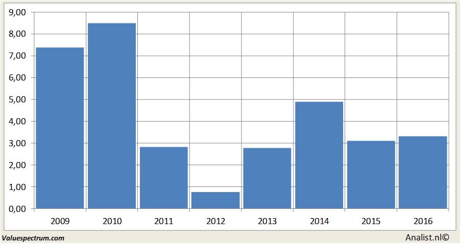 The analysts expect for 2018 a net profit of 481 million euros. For this year the majority of the analysts, consulted by press agency Thomson Reuters, expects a profit per share of 12 cent. Based on this the price/earnings-ratio is 20,33.