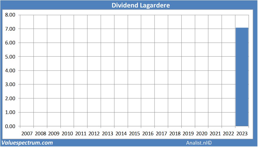 Investors in Lagardere can expect a huge dividend payment. Based on the recent analysts' consensus the stock now has one of the highest dividend returns of the French market. Per share the analysts expect a dividend of 1.3 euros per share. Thus the dividend yield equals 6.65 percent. The average dividend yield of the media companies is a relatively high 7.05 percent.