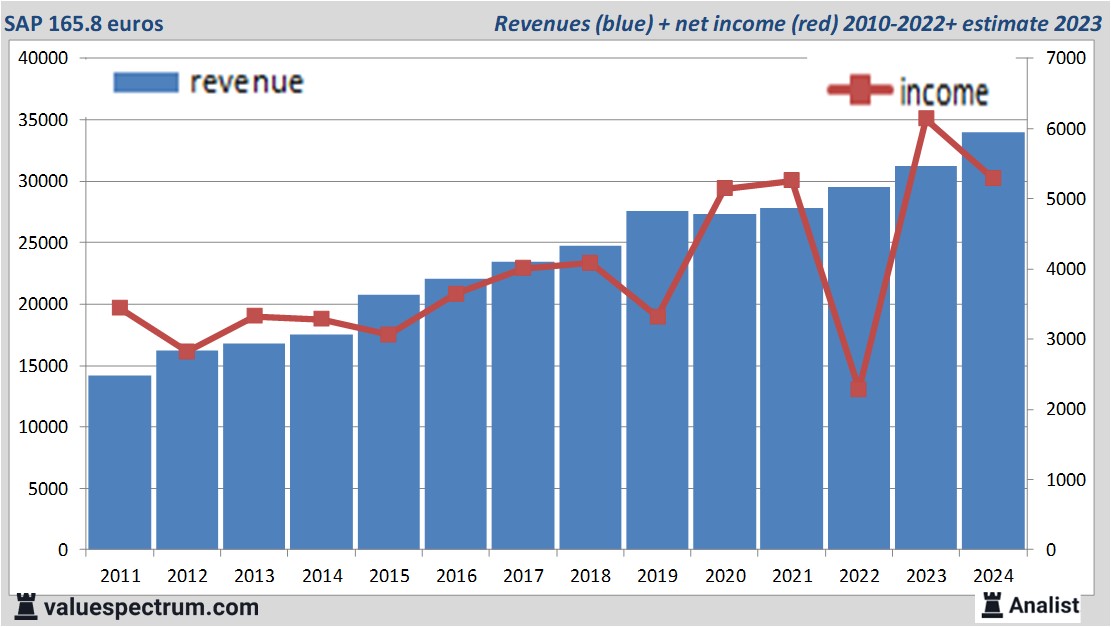 The analysts expect for 2024 a net profit of 5.29 billion euros. For this year the consensus of SAP 's result per share is a profit of 4.58 euros. With this the price/earnings-ratio is 36.2.