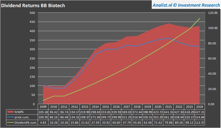 00Analysts expect a dividend of 2.69 CHF per share. Thus the dividend yield equals 7.19 percent. The average dividend yield of the biotech companies equals an attractive 3.55 percent.