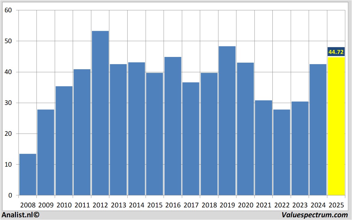 The analysts expect for 2024 a net profit of 412 million euros. The majority of the analysts expects for this year a profit per share of 3.46 euros. Based on this the price/earnings-ratio is 12.92.