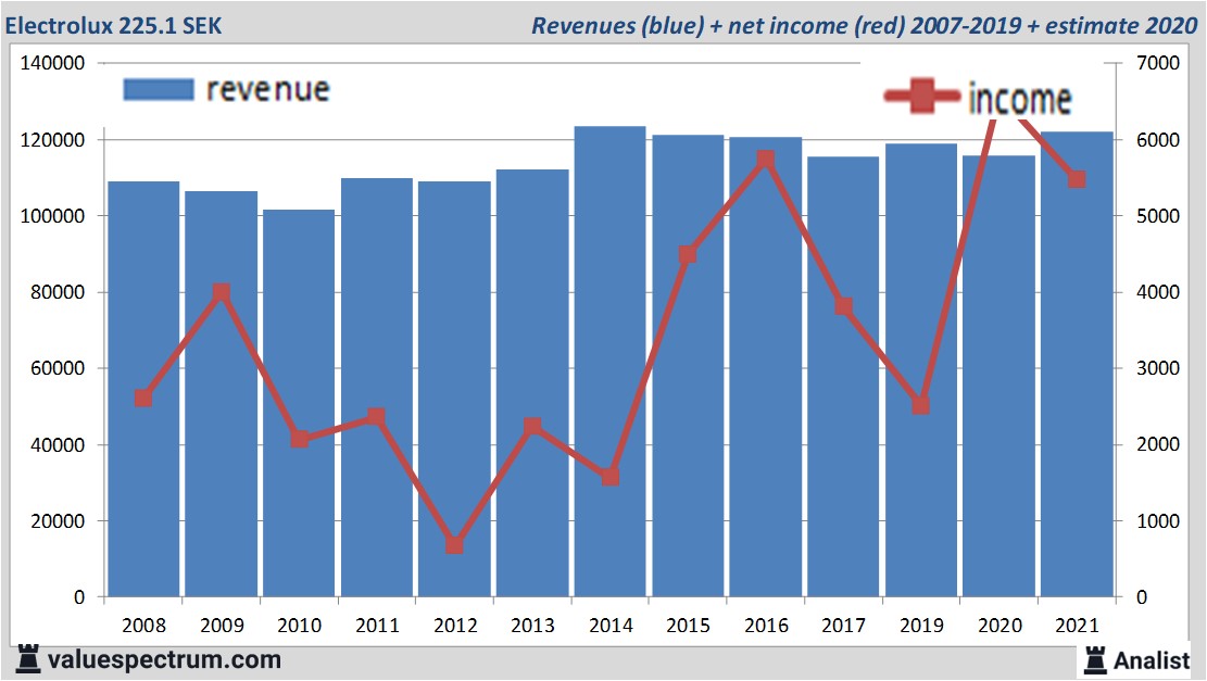 The analysts expect for 2021 a net profit of 5.48 billion SEK. According to most of the analysts the company will have a profit per share for this book year of 19.06 SEK. Based on this the price/earnings-ratio is 11.81.
